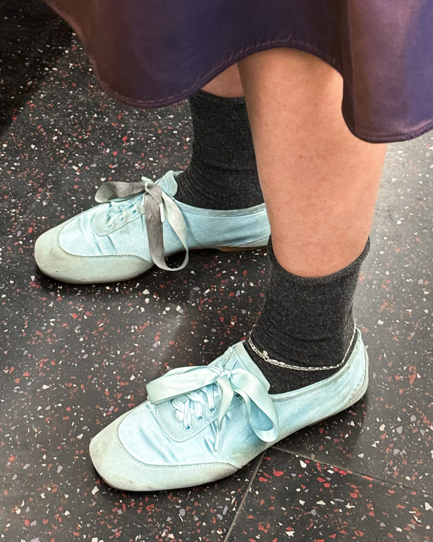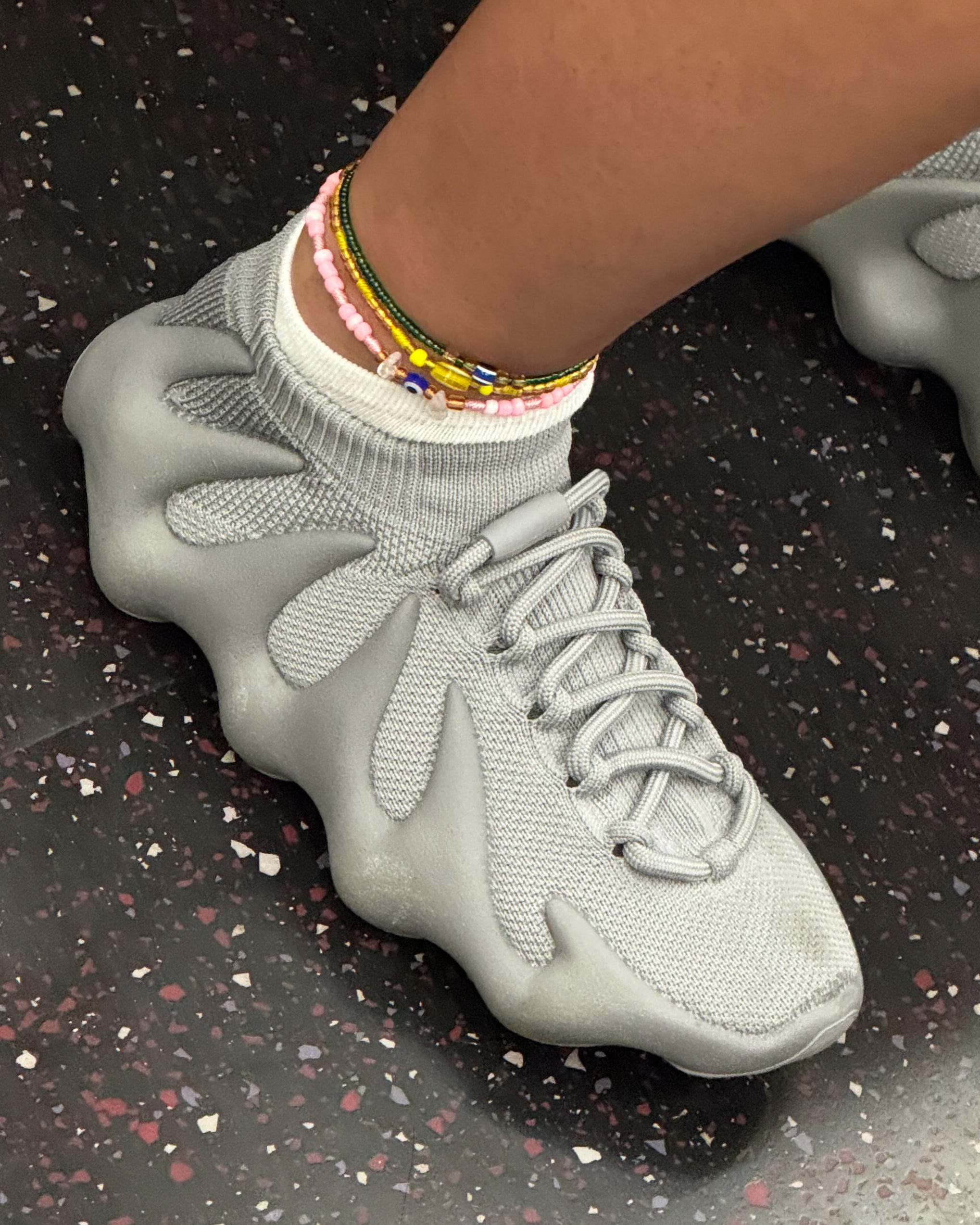 When I opened the WeTransfer link she sent me with all the images, I was shocked by the sheer number of anklets she spotted around town. I love seeing all the different ways people style them—on top of each other, with socks, in pairs—and the range.
