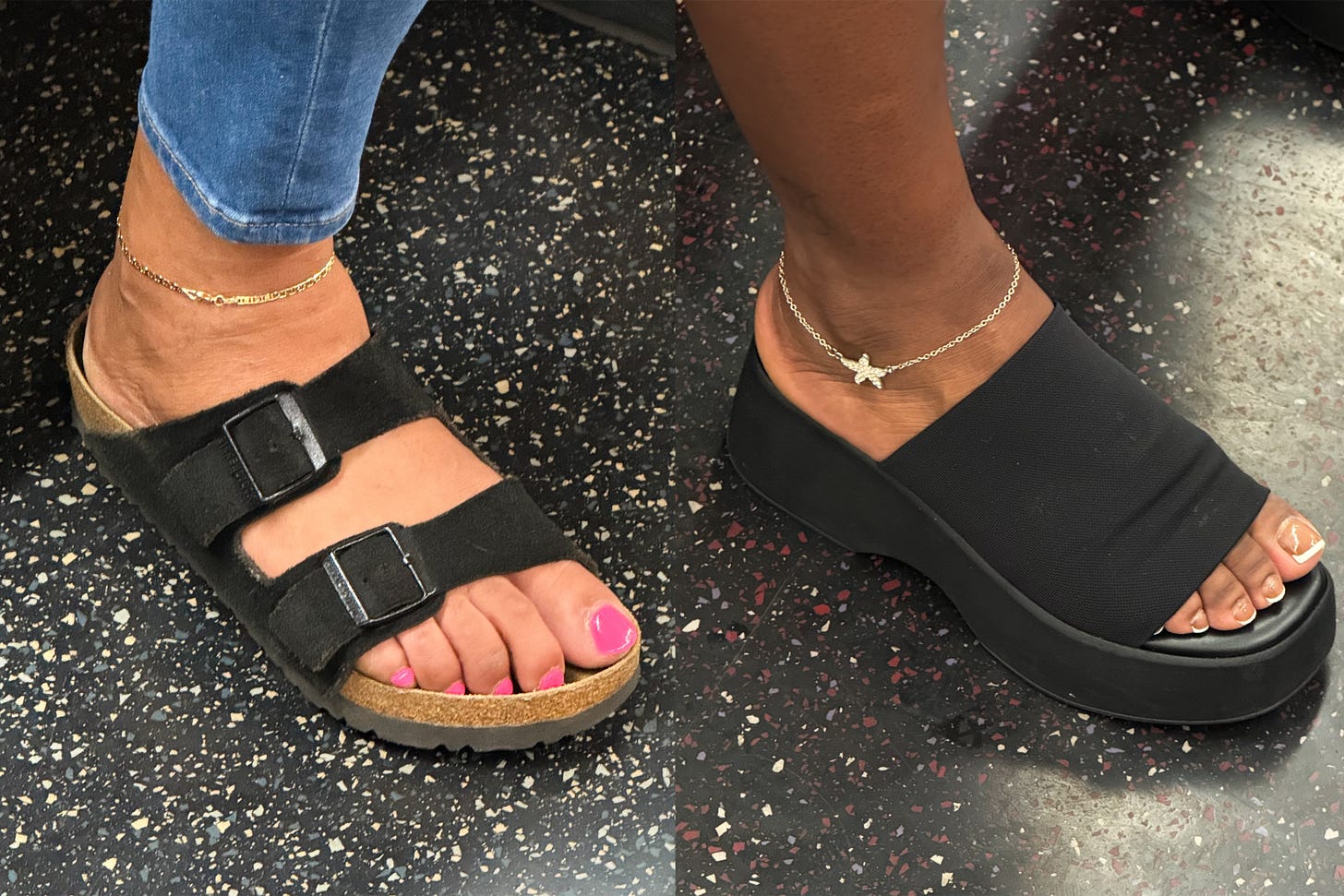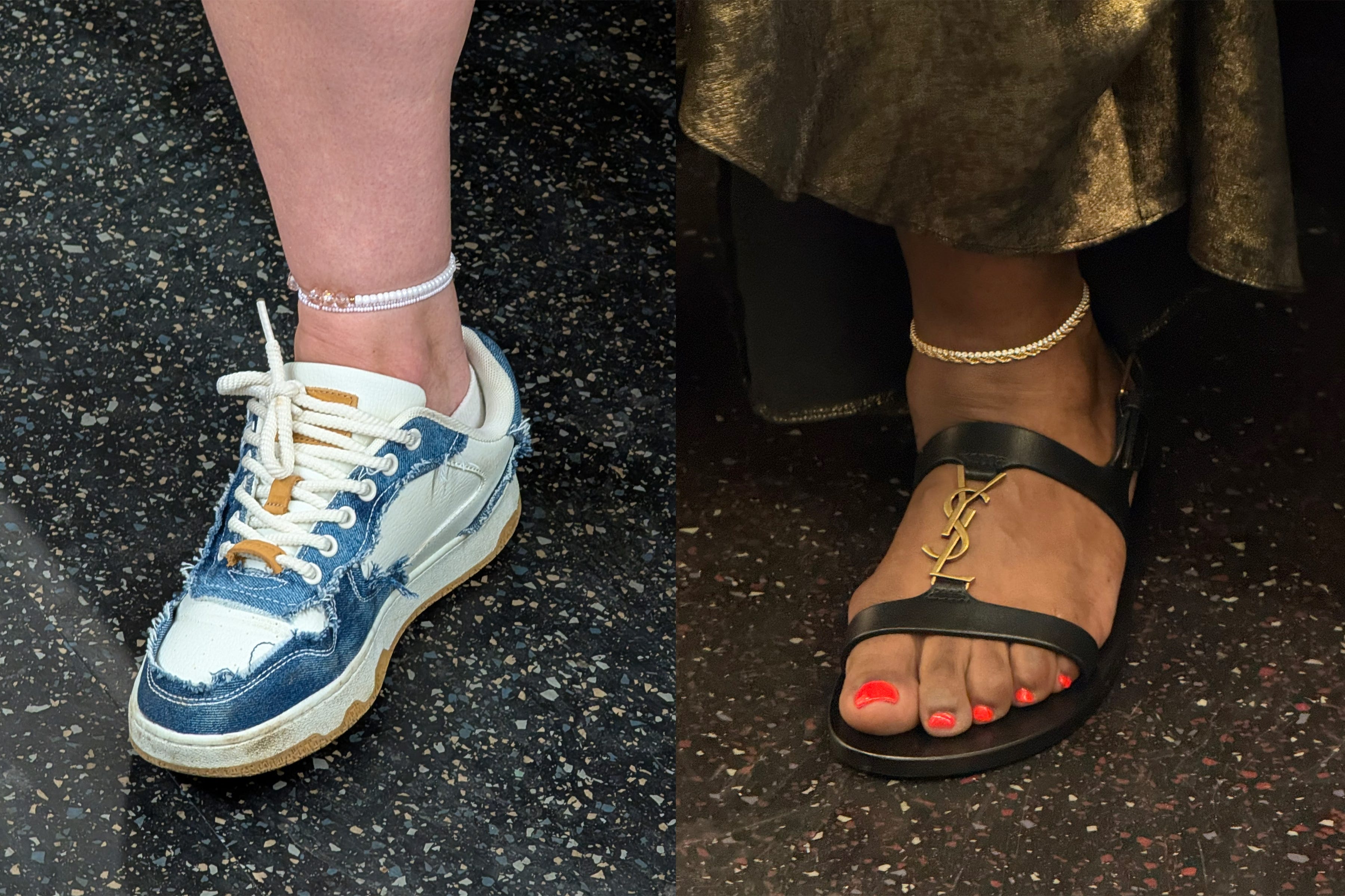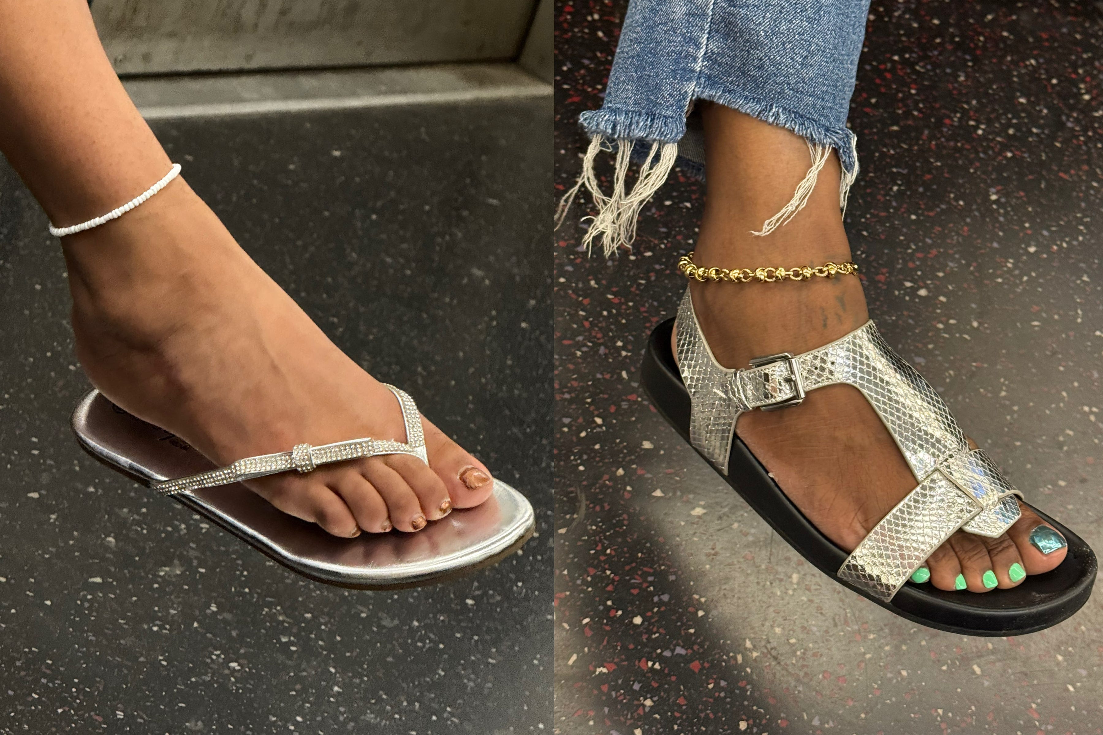 Anklets, those alluring, summertime adornments, are peaking on the subway right now. Sightings are up all over the city, but anklets are not a flash-in-the-pan trend. These ornaments are timeless with ancient origins. Anklets were favored by women in predynastic Egypt, ancient Greece, and across Europe during the Bronze Age. Not to mention their ritual significance in India, particularly for wedding traditions, and in Southeast Asia. See how New Yorkers are adorning their ankles below.”